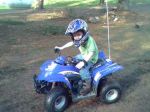 This is a great starter quad for the little guys.  Electric start with teather cord.  I bought a set of rear tires for it that had a little more traction but never put them on.  This is a two stroke motor and I always mixed it a little rich to help protect the motor.  $600.00 OBO   (607)222-8940  ask for tim