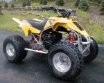 02 blaster...has skidplate, a-arm guards, swingarm skidplate, paul turner pipe/silencer, new oury grips,fmf bars, uni filter, pro design intake, oko carb, nerf bars, works perch, terry billet thumb throttle, holeshots and douglas rims, maier plastic...comes with stock carb and thumb throttle. torrs eliminated, pre mix eliminated...key, switch, and lights all work, freshly greased, all bearings tight. comes with stock rear tires and rims....