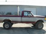 i have an 89 f150, 6in lift, 36 in tires. the back ones are newer then the fronts. the front right studs broke off. will fix for ya. 6in stack runs strong. does have rust around the fenders
