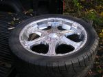 Set of 4 chrome 22" Ford 5 lug rims. Complete with 305/40R22 Sunny SN3980 tires. Wheels have less than 2kmi on them. 5 X 135 lug pattern.