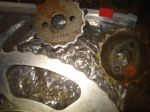 pipe works good, sprockets are like new, rear pegs are new never used, handlebars would be good for a pit bike and most bearings are usuable