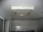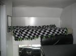 Box van has a full garage in back with ramp that slides into box van under garage. Hot water heater with 150 gal holding tanks, indoor and outside shower and toilet. Table that collapse's to a bed and storage underneath. there is a Bed over drivers, passenger seats. A/c in the ceiling for living quarters. Work bench in garage with cabinets.