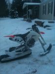 08 Honda 450 with explorer track kit. Fully registered in New York state as a snowmobile. 100% legal to ride on trails.  Will separate track kit and bike,  track kit will work on any full-size bike This kit can be used year-round with front tire on it