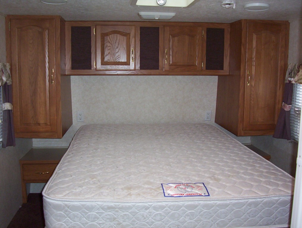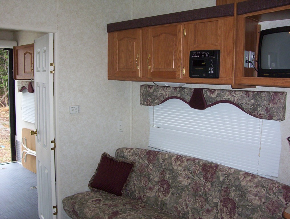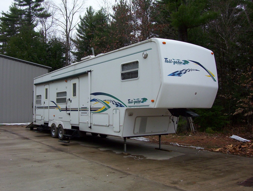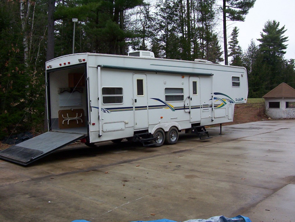 32, 5th wheel, AC, Microwave, Stereo, TV, seperaate Master Bedroom, full fridge, outside shower, fuel station, 100 gal water, seperate 10x8 garage