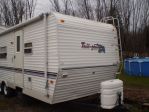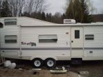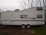 for sale a 2001 keystone tailgator  toyhauler it is 28ft long well kept asking 8500 or trade . there is no divider it is all open. seats fold up the sides and make into a beds. there is a shower, kitchen, heat, ac, frig, microwave, stove w oven,radio, queen size bed. call kris at 267 6697