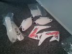 NEW SET OF WHITE PLASTICS AND WHITE 86 BAILEY GRAPHICS FOR 02-07 CR125 AND 250. I PAID $150 FOR JUST THE GRAPHICS. HAD TO GET FROM THE U.K. AS NONE AVAILABLE IN THE USA. CYCRA DISC COVER INCLUDED JUST NOT SHOWN.  MAKE OFFER