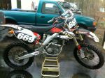 2008 honda crf250r, mph improved stock mod head,full yoshimura exhaust,no toil power filter kit,over sizes foot pegs,asv clutch lever,oversized renthal twinwall bars,renthal chain and sprocket,black rims.