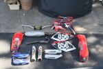 2007 crf250r red plastic with torco racing fuel graphic also a head pipe and muffler and hand guards and pro taper handel bars ...$ 50
