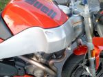 ..... got tipped over in a trailor once only put a little dent where ur knee would be (look below at pic) and worped the front rotor a little nothing else