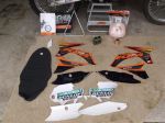 There is very little use on this bike, and other than cosmetic, it is stock. Comes with many extras, including mechanic stand, triangle stand, additional brand new spare battery still in box (Yes it's electric start - SWEET!), oil filters, air filter, extra seat cover, and extra graphics.  Also has brand new Dunlop Geomax MX51 tires; front and rear.