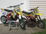 Would like to sell as a package deal, but will separate. One is a 2010 and the other a 2009. Both bikes are in very good condition and run excellent. Both bikes were setup by Powerband Racing for a 65lb rider, the 09 has not been rode at all this year and has a new clutch and basket on it. The 10 has a newer clutch and basket (2-3 races) and has been rode 1 time in the last month. I am asking $2000 for the 10 and $1200 for the 09. If you are interested in both I will also include all spare parts, oil, and tools for these bikes (easley worth over $600) $3000 will get you everything. If interested I can supply more pics and a detailed list of items. Call 315-225-0564 Joe.