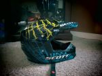 SCOTT HELMET HAS A FEW MINOR BLEMISHES HARD TO NOTICE. ALSO HAS GO PRO MOUNT ON TOP. DIDNT WANT TO REMOVE TO DAMAGE MOUNT OR HELMET. IN VERY GOOD SHAPE-$45.00